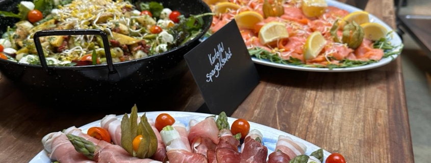 Wir servieren den Beelitzer Spargel in vielen Variationen: in der Spargelsuppe, in Salaten, mit Schnitzel, Rührei oder Schinken, im Spargelbrot und in der Spargelbutter oder auf dem Flammkuchen. Mit verschiedenen Soßen, Kartoffeln, Kartoffelauflauf und leckerem Dessert zum Abschluss.